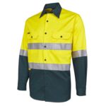 100% Cotton for 100% comfort,190gsm double pre-shrunk twill,Complies with Standard AS/NZS 4399:1996 for UPF Protection,Complies with Standards AS/NZS 1906.4:2010 AS/NZS 4602.1:2011 Day Only,Two-piece collar,Two front pockets with button-down flaps and pen insert,Curved hem with back tail styling,2 needle lap seamed for improved durability,All pressure points bar tacked for extra strength and durability